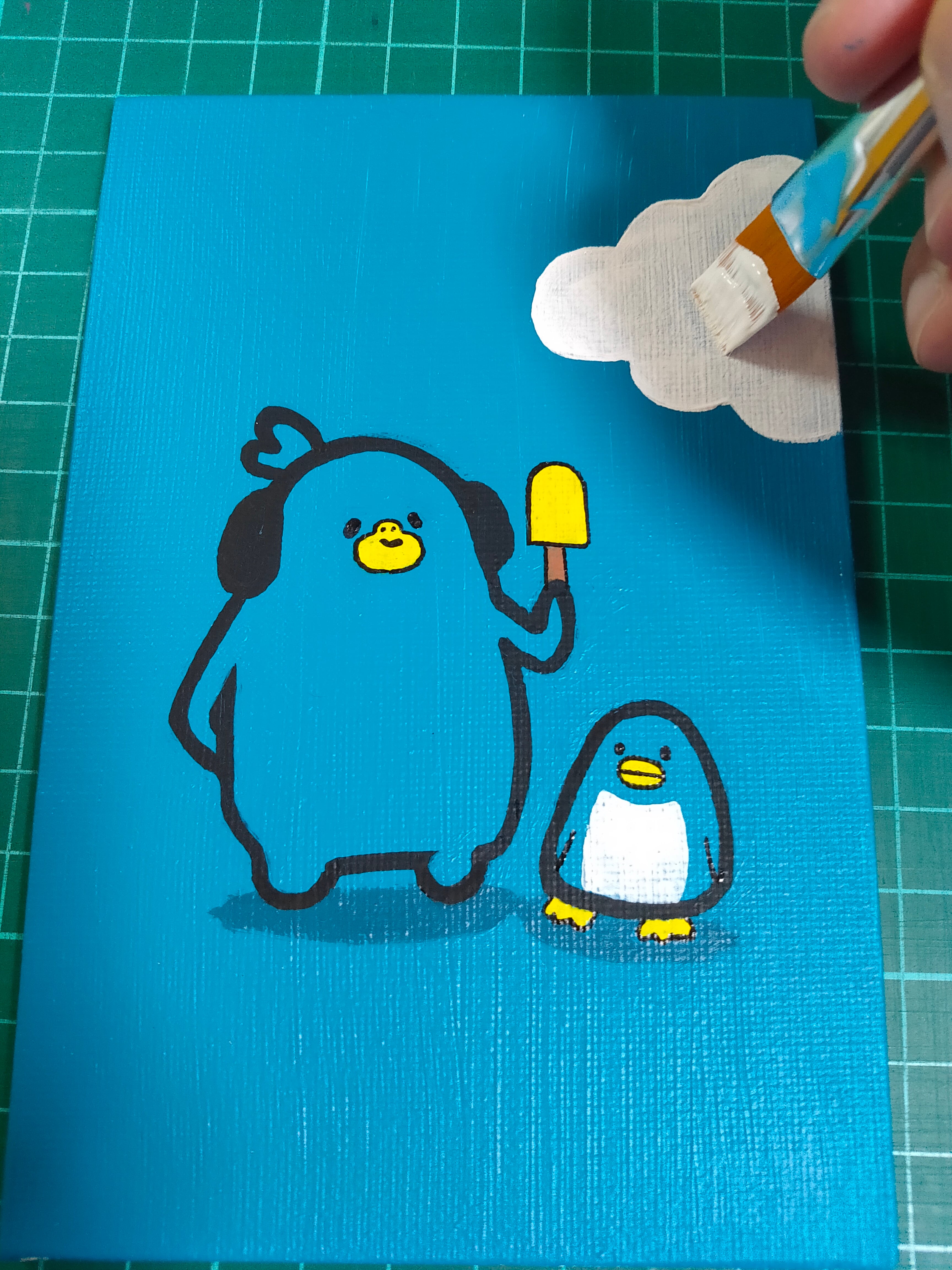 ダックはペンギンくんにアイスを見せびらかしてるのかな?