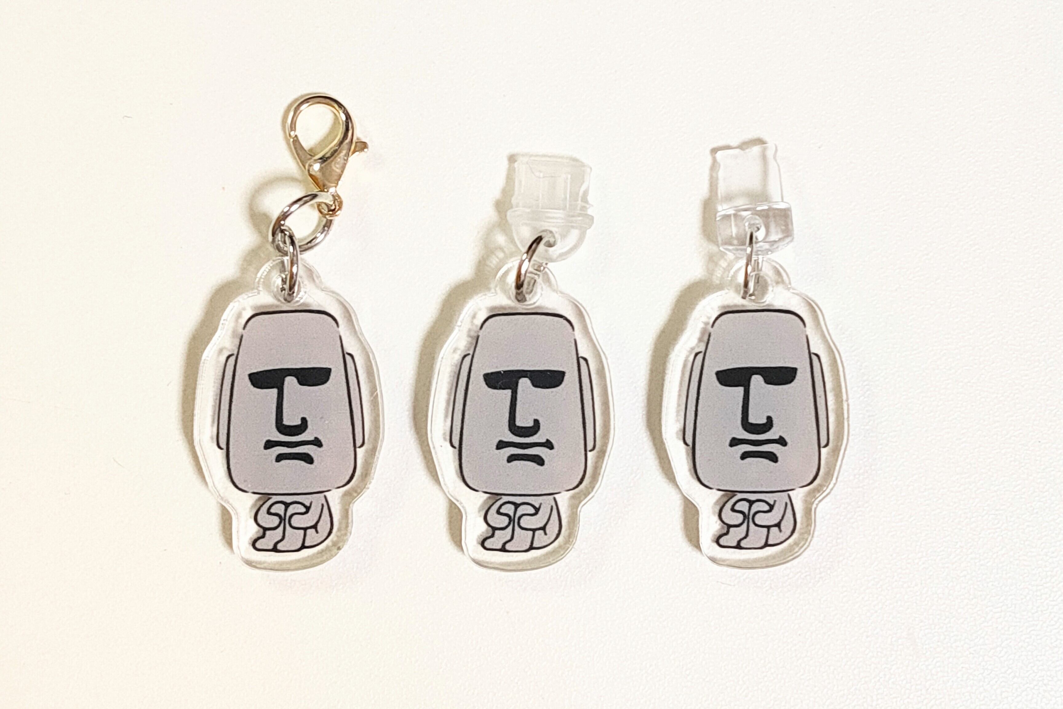 モアイのアクリルチャームが、あなたのスマホ充電ソケットを防塵&防水します!
