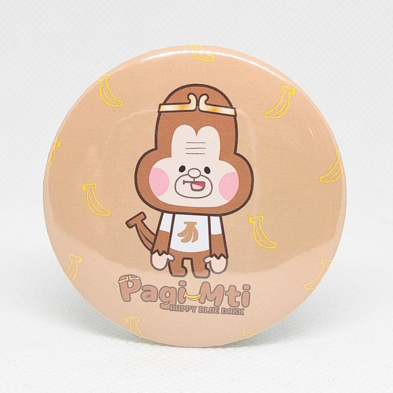 絵本で登場する新キャラクター、猿のパギー・ムティの缶バッジです。