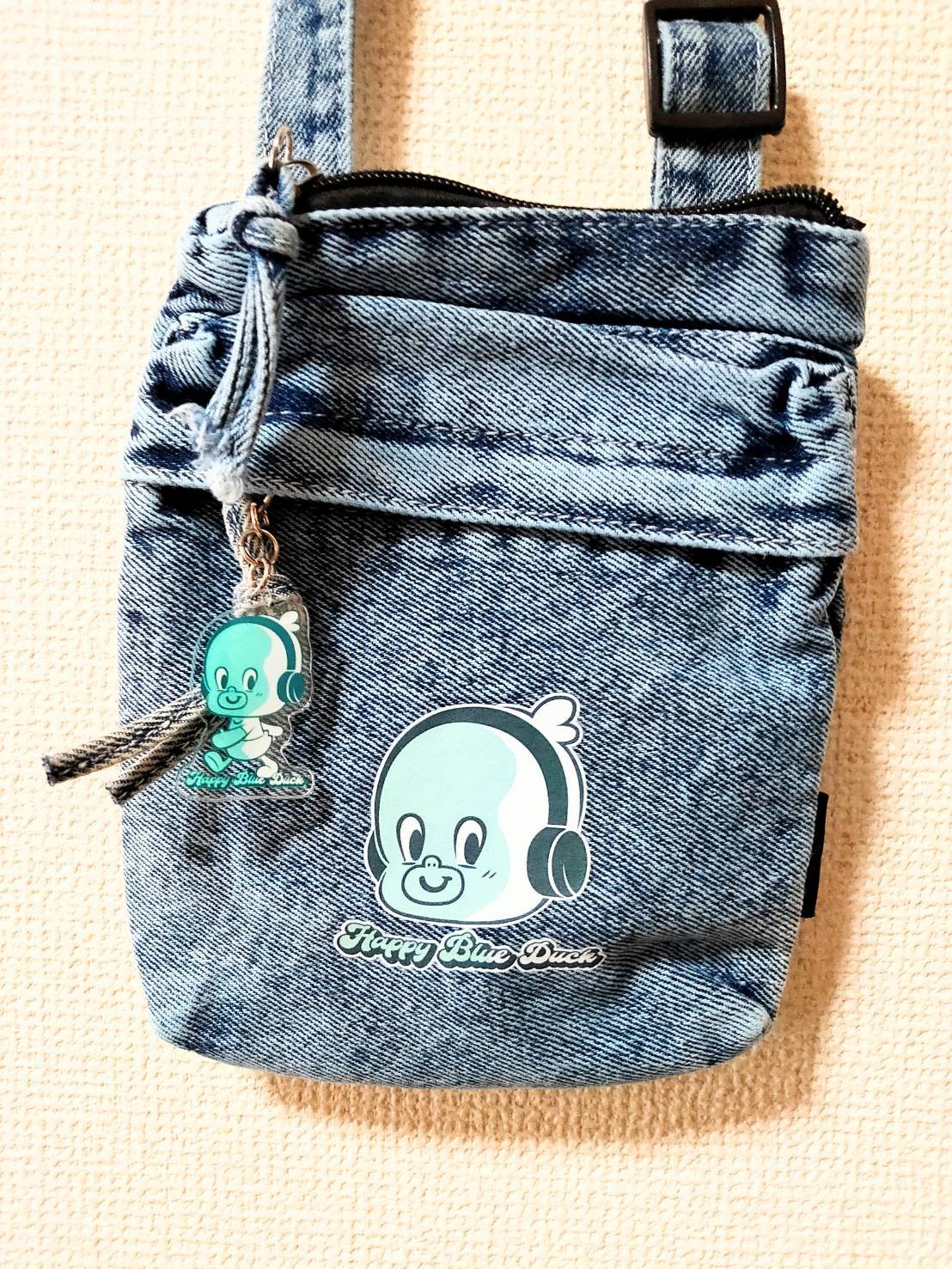 アメリカンダックのスマホバッグ アクリルチャーム付き