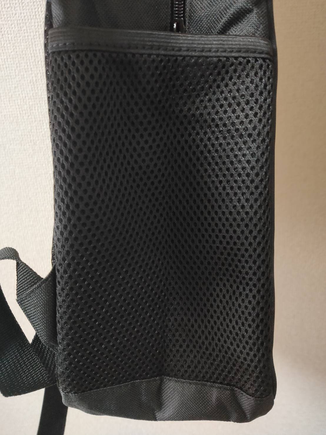 缶バッジコレクション用に制作したリュックですが、通常でも使用できるデザインになっています。上部のロゴは色変更可能で、全体的に薄い黒でロゴを印刷しています。