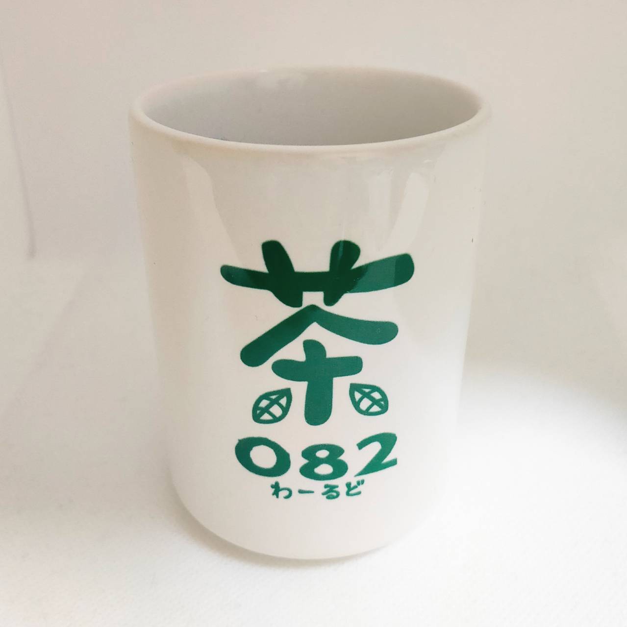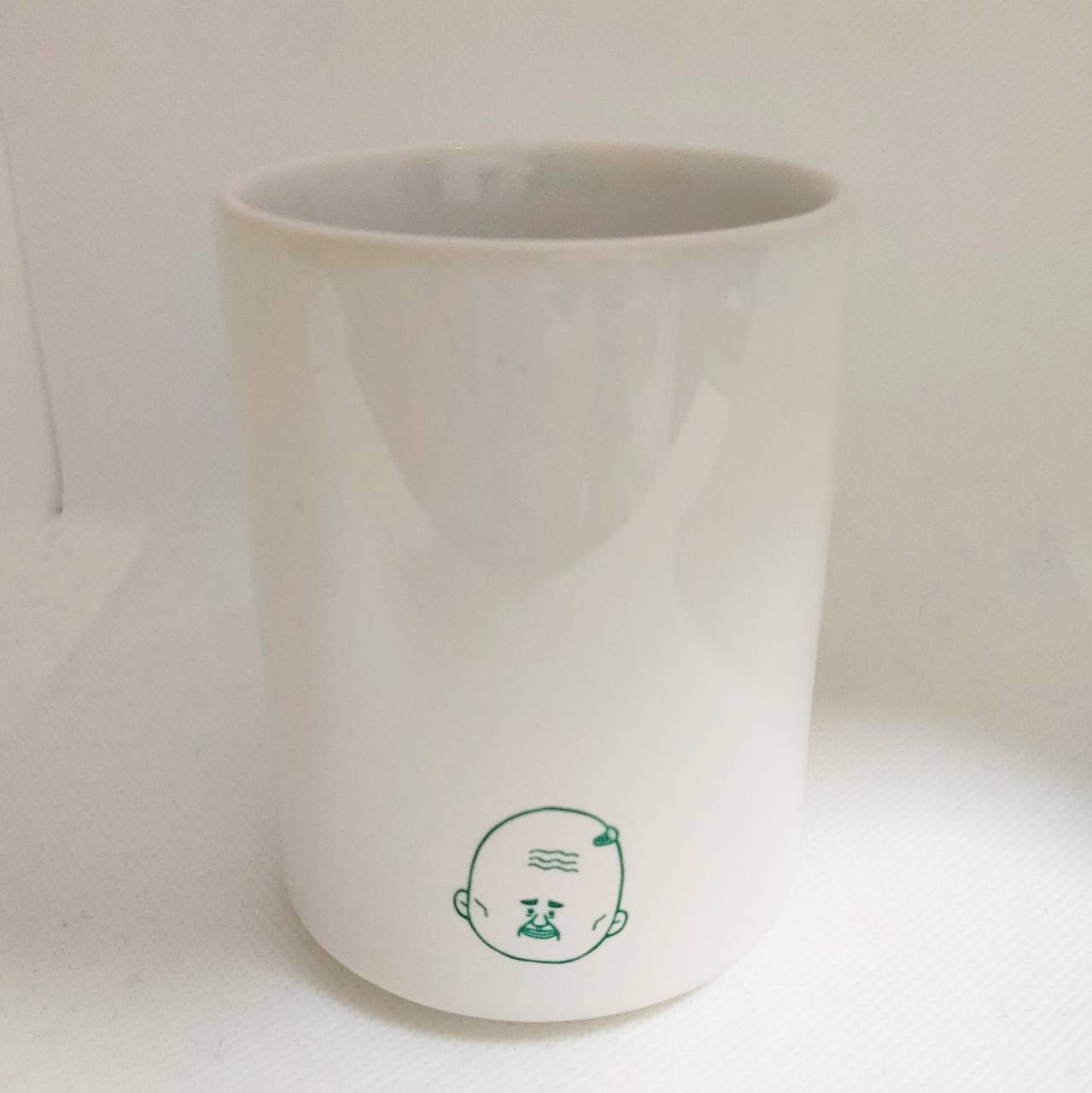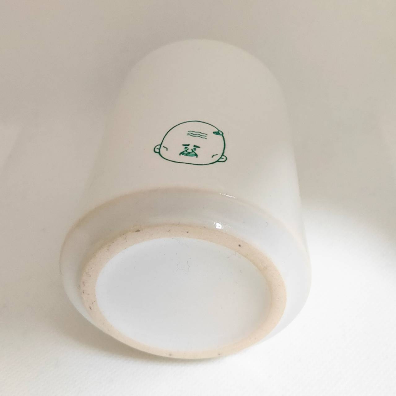 緑のお茶のロゴに幸三郎の顔がほどこしてあるキュートな湯呑です。
