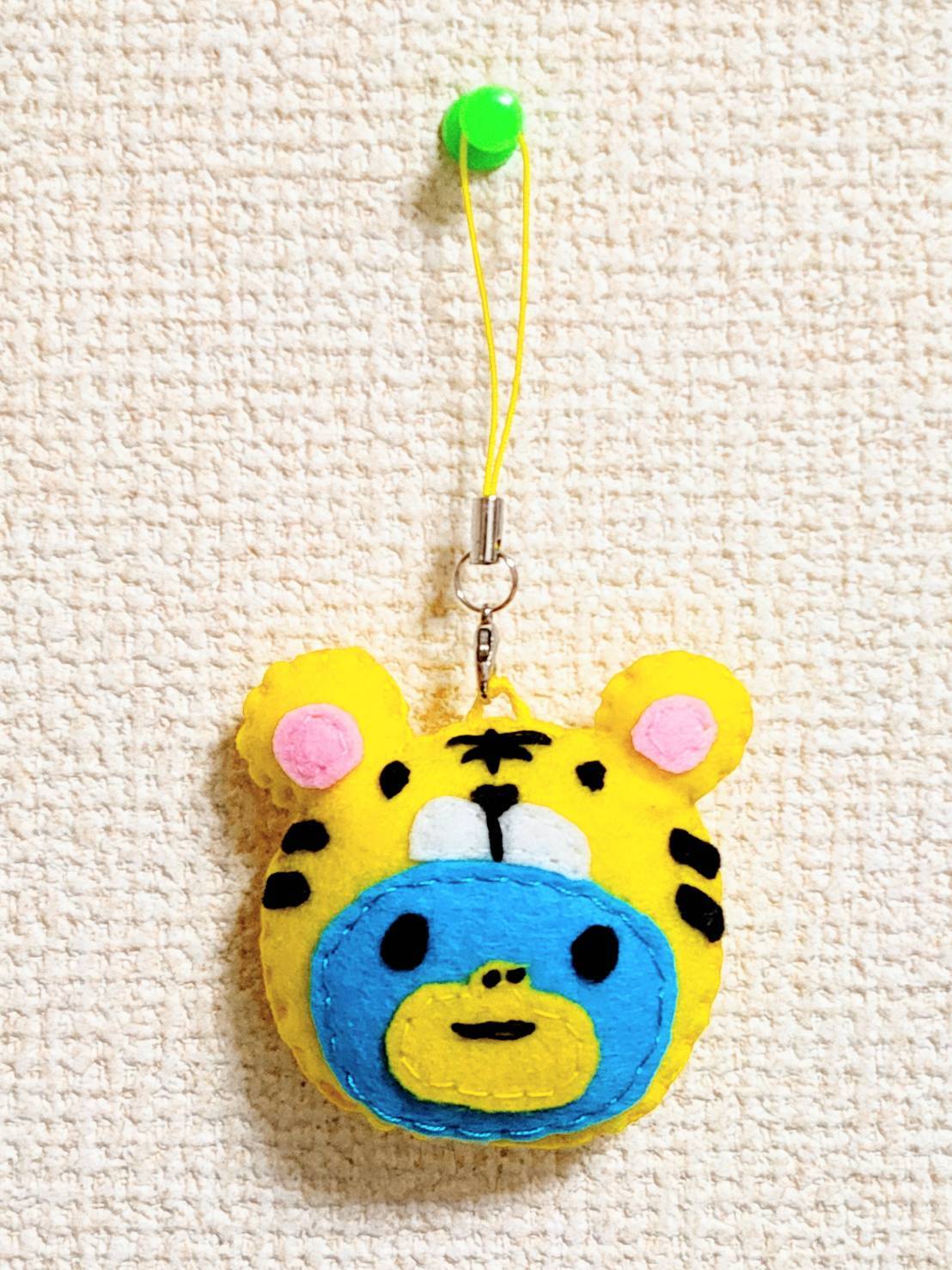 虎の被り物をしたダックのぬいぐるみキーホルダー