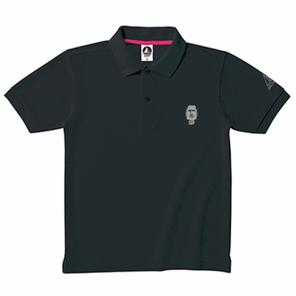 082WORLDモアイポロシャツ黒(ドライシャツ)