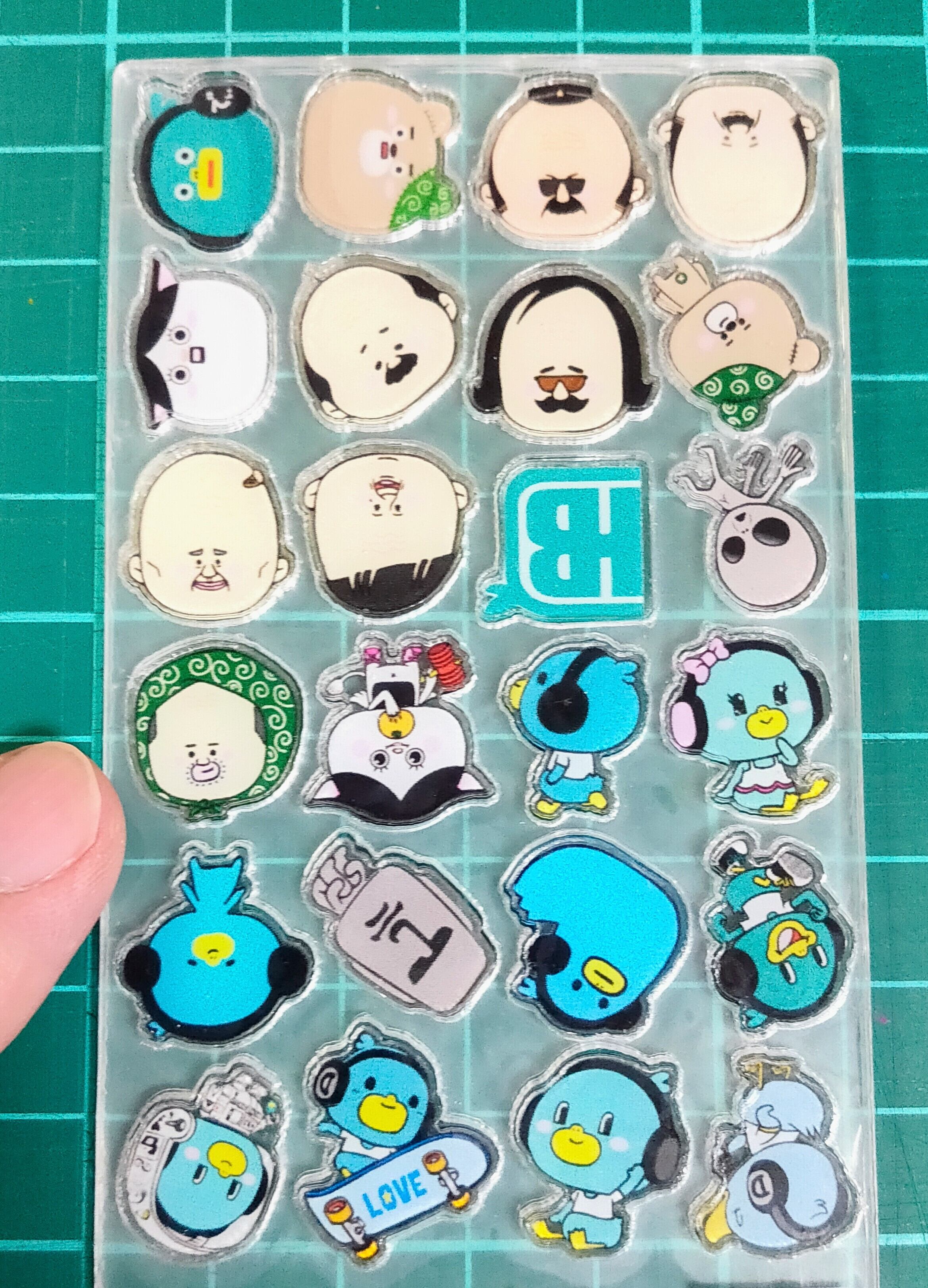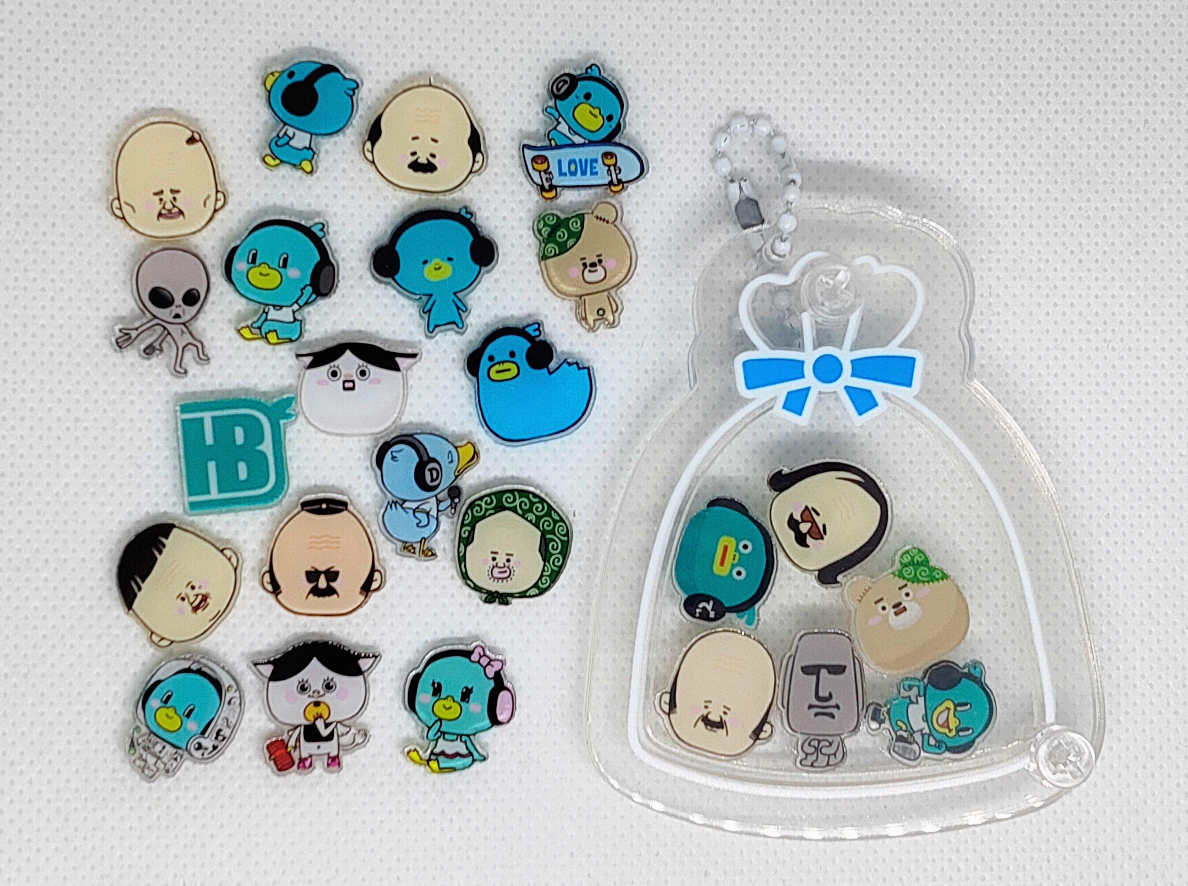 HAPPY BLUE DAKKと082WORLDの様々なキャラクターが小さなアクリルマスコットになって登場。