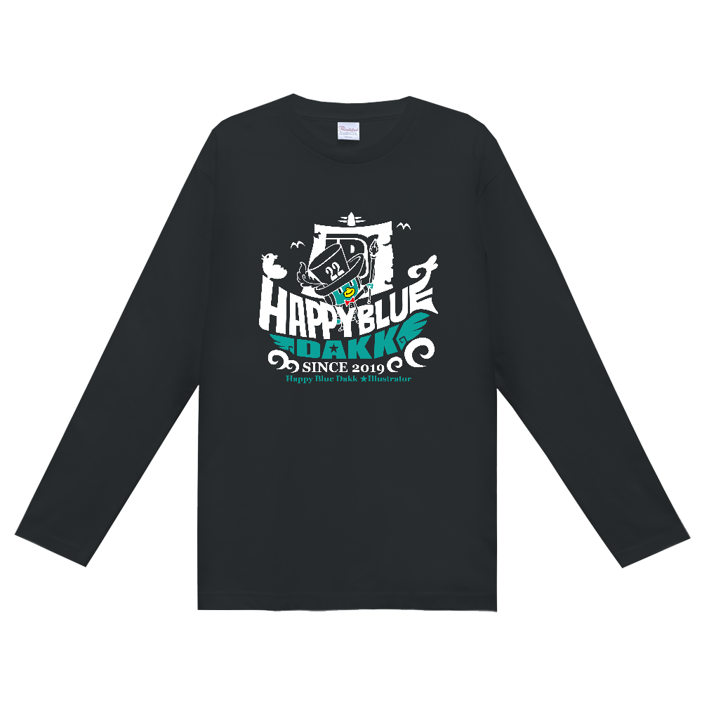 世界を渡るHAPPY BLUE DAKK船 ダックブルー黒シャツ