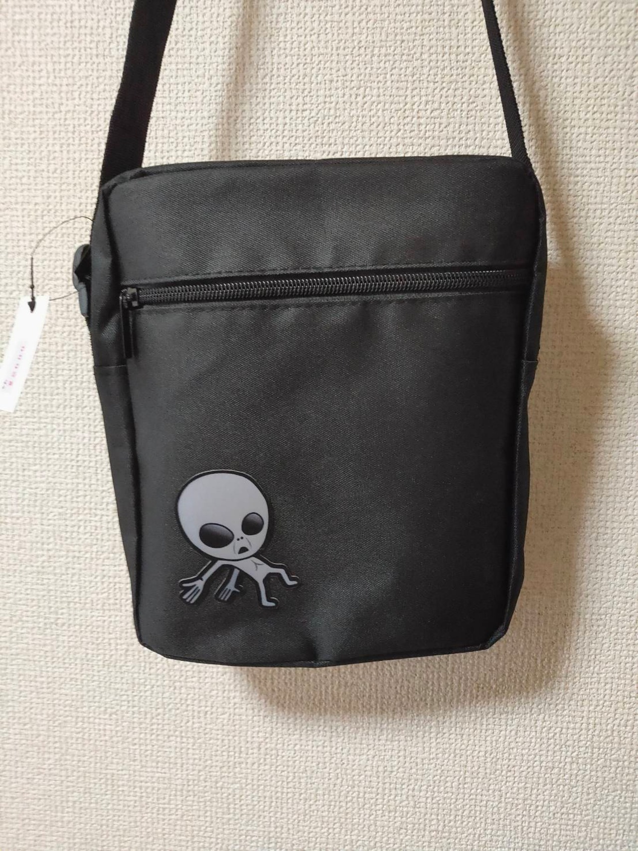 ミステリアスロゴ&モアイ、グレイ付きのショルダーバッグです。