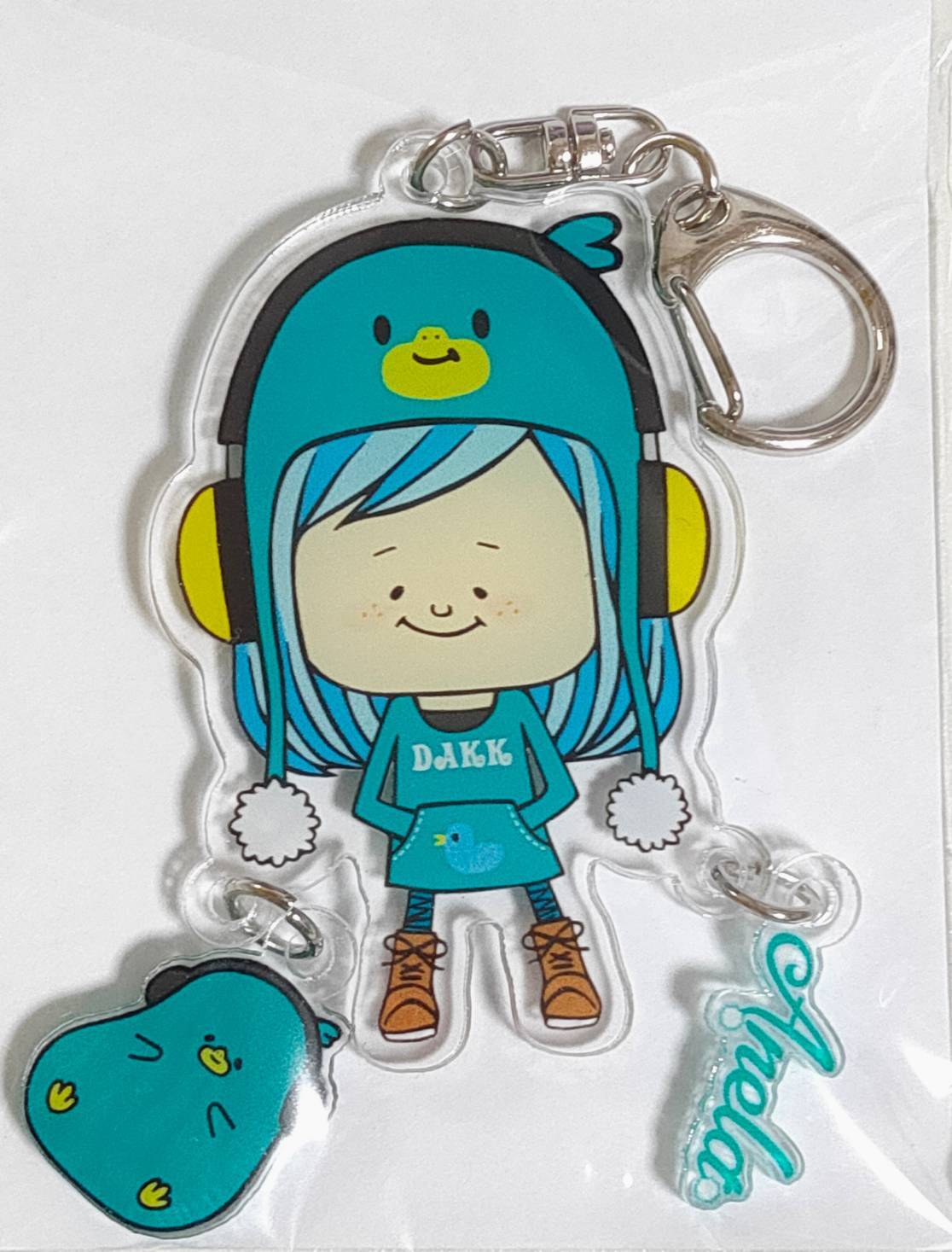 アネラとそら豆ダック、アネラロゴをつけた三連アクリルキーホルダー。